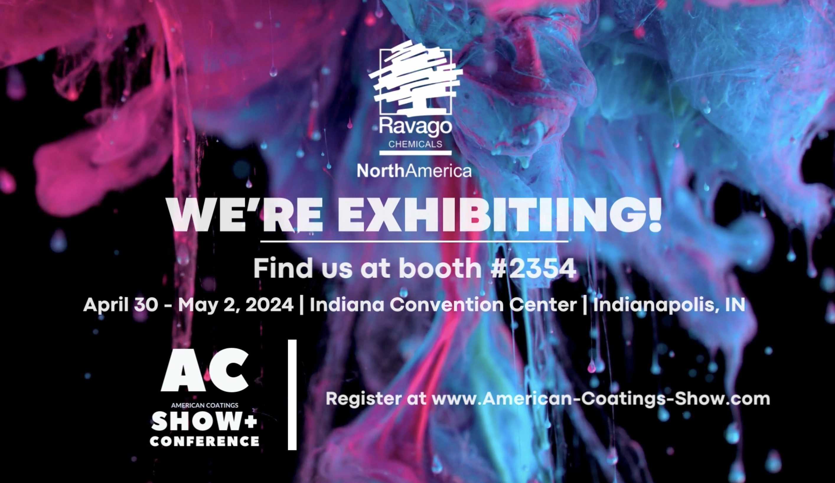 Join us and be part of one of the leading coating events on April 30 – May 2 at Indiana Convention Center , Ravago Chemicals North America (RCNA) dedicated CASE technical sales team will be at Booth #2354 sharing some of our on-trend formulations and featured specialty chemicals that your customers are seeking.